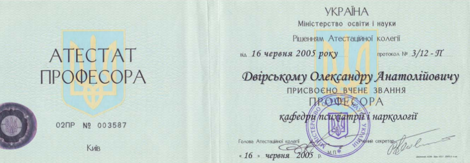 Я - Двирский Александр Анатольевич, доктор медицинских наук, профессор, врач-психиатр высшей